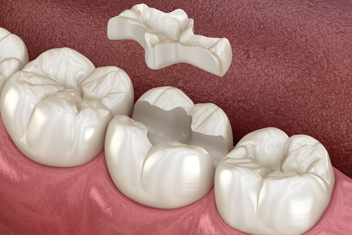 eignen sich besonders bei grösseren Zahndefekten. Diese Versorgungen sind indirekt angefertigte Einlagefüllungen aus Gold oder Keramik. Nach Abdruck des defekten Zahnes wird im Zahnlabor das Inlay/ Onlay passgenau in einem Stück angefertigt und nachher im Mund in den Defekt zementiert. Die Passgenauigkeit und Dichtheit ist bei diesen Restaurationen höher als bei den konventionellen Kunststofffüllungen.